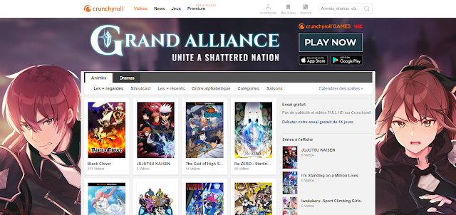 該網站還為您提供所有新功能. 免費版本有限,它為您提供廣告和高清視頻,無需. 付費版本在日本廣播後一個小時提供情節. 情節的廣播在HD 1080p和720p中完成. 使用Crunchyroll,您可以在任何連接的設備上關注自己喜歡的動漫. 不忘記此網站將幫助您通過其推薦系統發現新動漫.